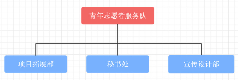 女友 的青年志愿者服务队由三个部门组成,分别为秘书处、项目拓展部和宣传设计部,三个部门和队长团共同组成了女友 青年志愿者服务队。