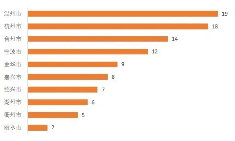 来自温州市的小萌新最多,达19人,其次是杭州市、台州市,分别为18人、14人。