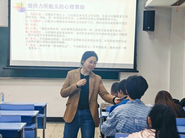 4月17日下午,女友 寝室长心理委员培训会在c楼108教室顺利展开。校心理健康教育中心李瑜老师、校保卫处笪文娟老师、学办主管王寿铭老师、辅导员连慧莹老师以及各班心理委员、寝室长参加此次培训。